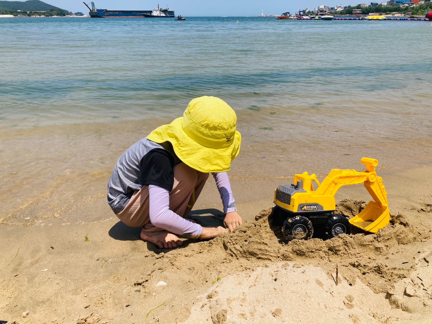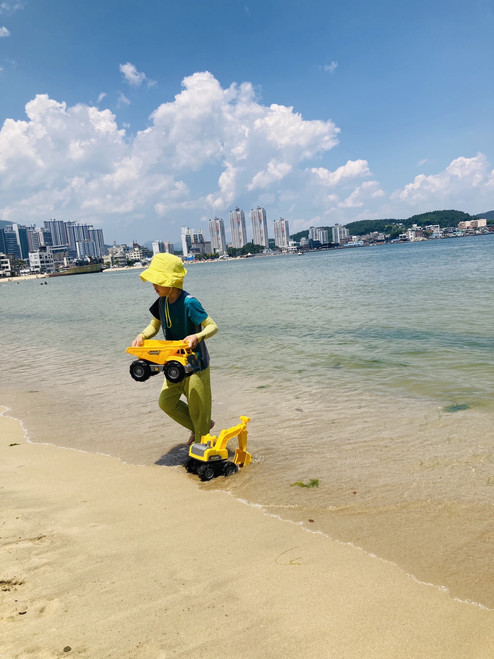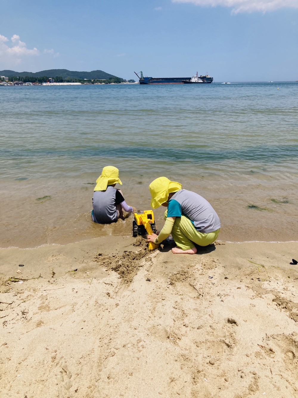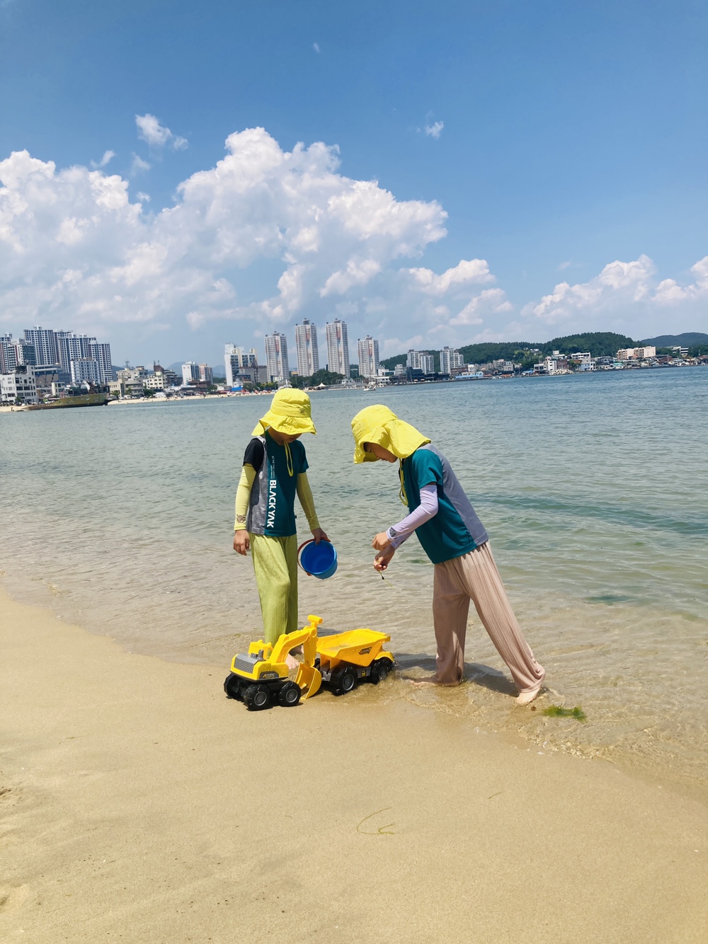 부산 기장 일광해수욕장에 아이들과 모래놀이를 할겸 방문했는데 모래도 바닷가도 완만해서 물을 퍼다 나르면서 놀기에도 좋더라고요. 모래놀이는 주로 임랑 해수욕장, 고동잡고 놀기에는 솔개공원에만 다녀왔었는데 일광해수욕장도 아이들을 자유롭게 풀어 놓고 놀기에 좋았어요.