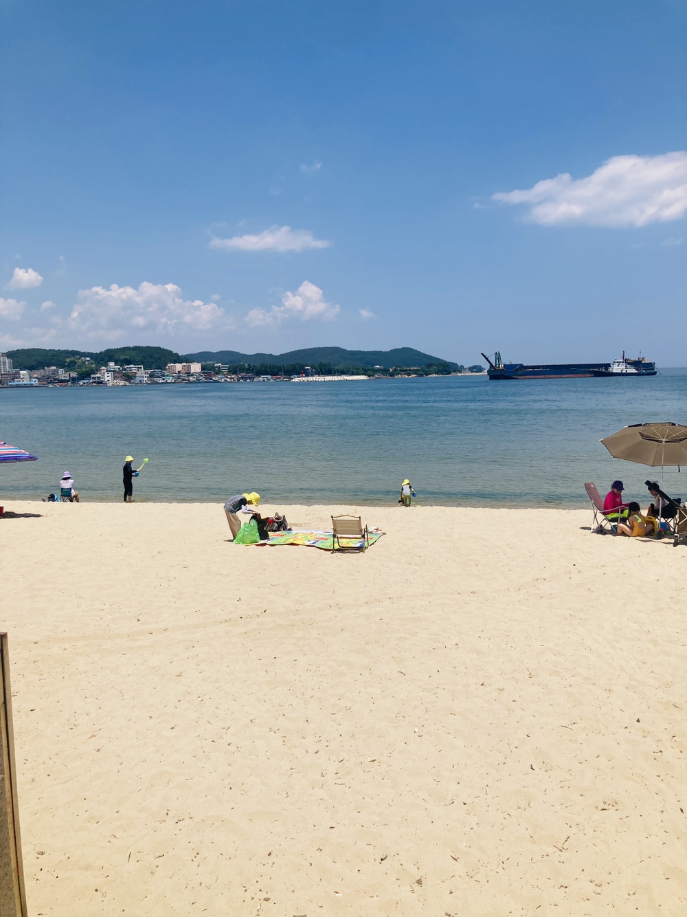 주말에 간식만싸서 갔는데 여름휴가기간엔 파라솔 대여도 해주고 샤워장도 있으니 맘먹고 놀러가기에도 좋은것 같아요. 주차하고 길한번 건너니 바로 해변이 나왔어요. 화장실도 바로 근처에 있어 처음 갔지만 편한곳을 잘 찾아서 주차 했더라고요.