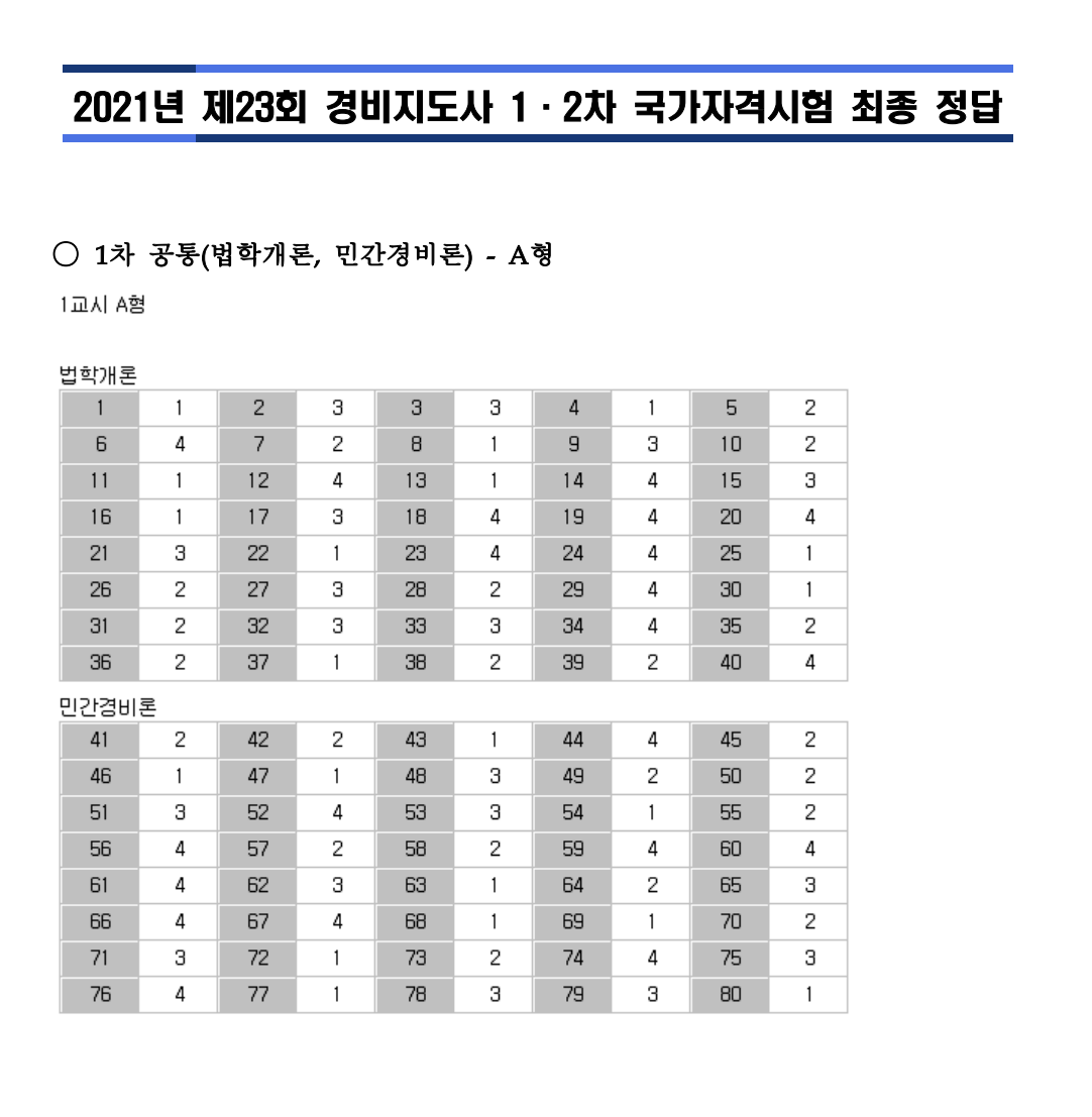 2021년 제23회 일반경비지도사 문제지 A형, B형 / 답안지 사진
