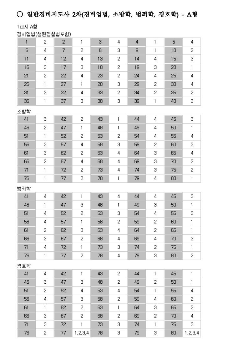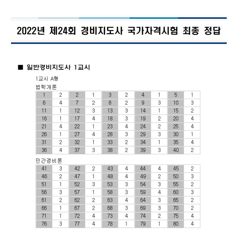 일반경비지도사는 기출문제, 시험지만 파일로 받아 보실수 있어요. 답안지가 없네요. 문제지와 답안지를 따로 받아서 확인 하셔야 합니다.