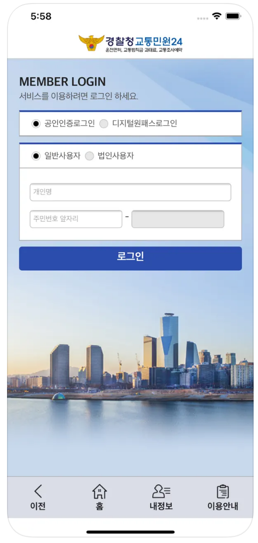 사용하는 휴대폰에서 경찰청교통민원 24 이파인 어플을 다운받아 바로 확인 하실 수 있습니다.
