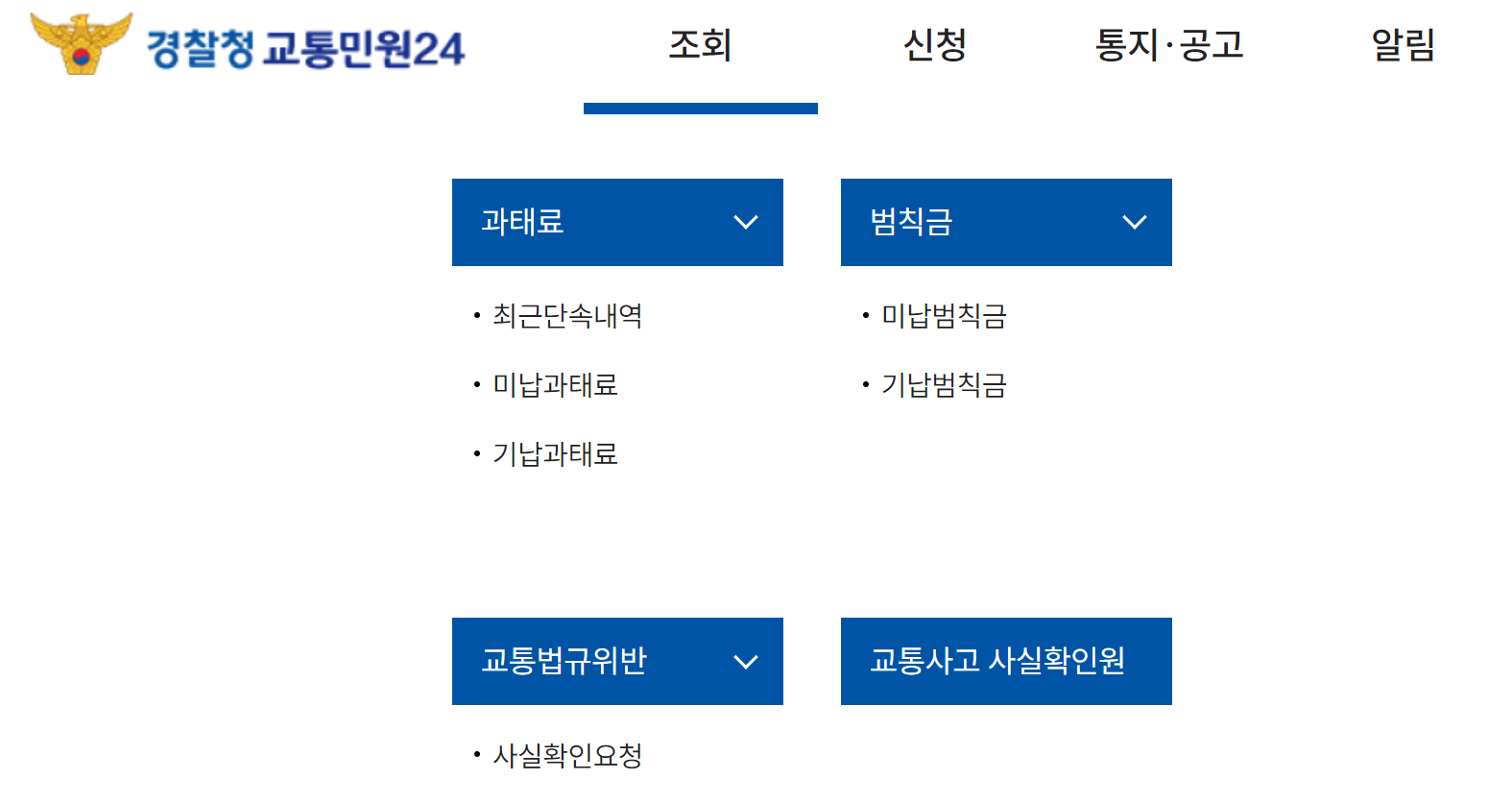 자동차 과태료 조회 납부를 위해 경찰청 교통민원 24 이파인 홈페이지에 들어가시면 아래처럼 과태료 최근단속내역, 미납과태료, 기납과태료 확인이가능하고 범칙금으로는 미납범칙금, 기납범칙금, 교통법규위반 사실확인요청이 가능합니다.