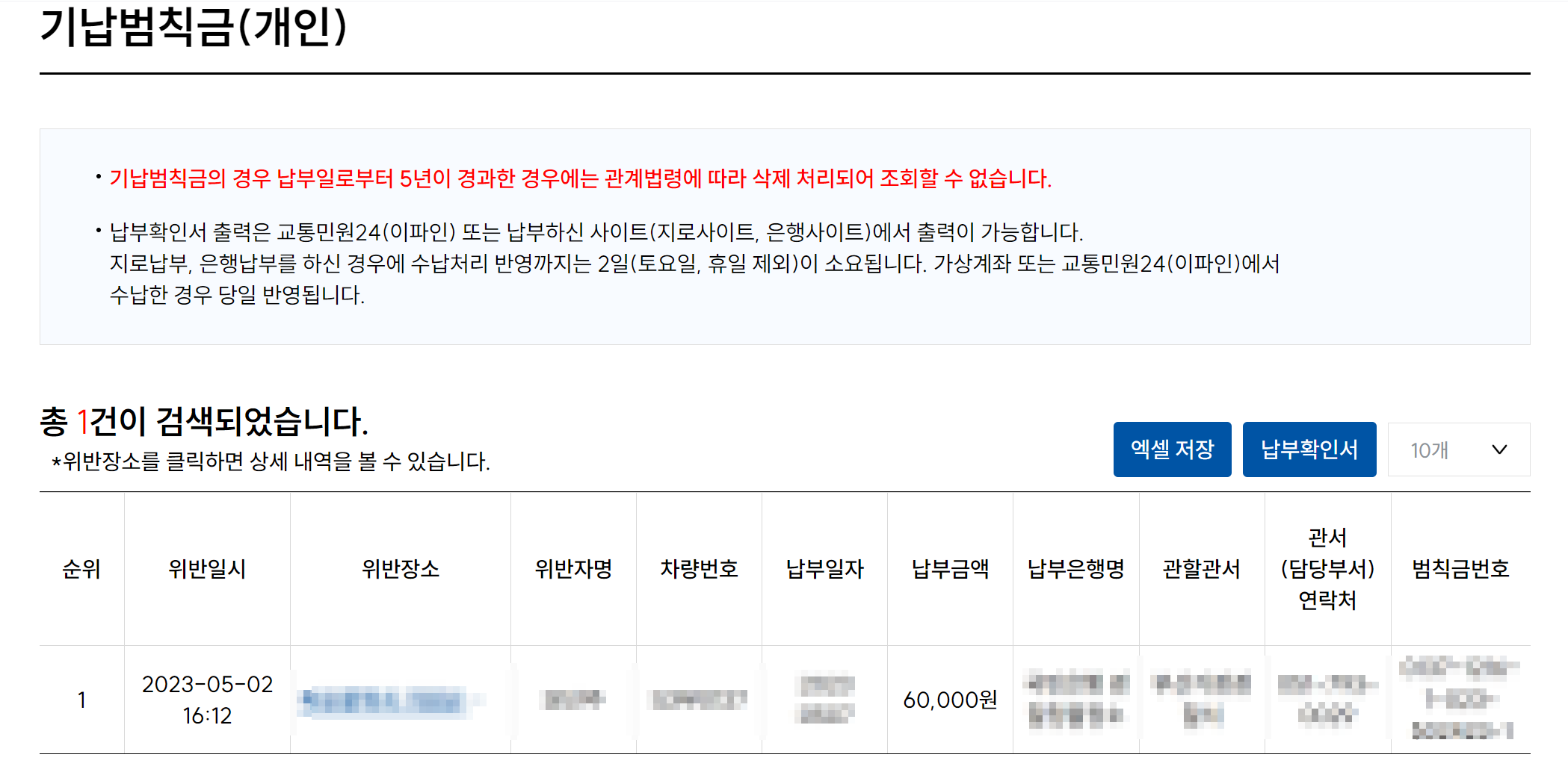 저는 차가 남편명의로 되어 있어서 최근단속 내역 조회를 하기 위해서는 남편이름으로 로그인을 해야 하는데 우회전 법이 강화되고 완전 정지 하지 않고 우회전하면서 냈던 기납범칙금은 제 명의 차가 없어도 제가 납부 했던 범칙금 확인이 가능 했습니다.