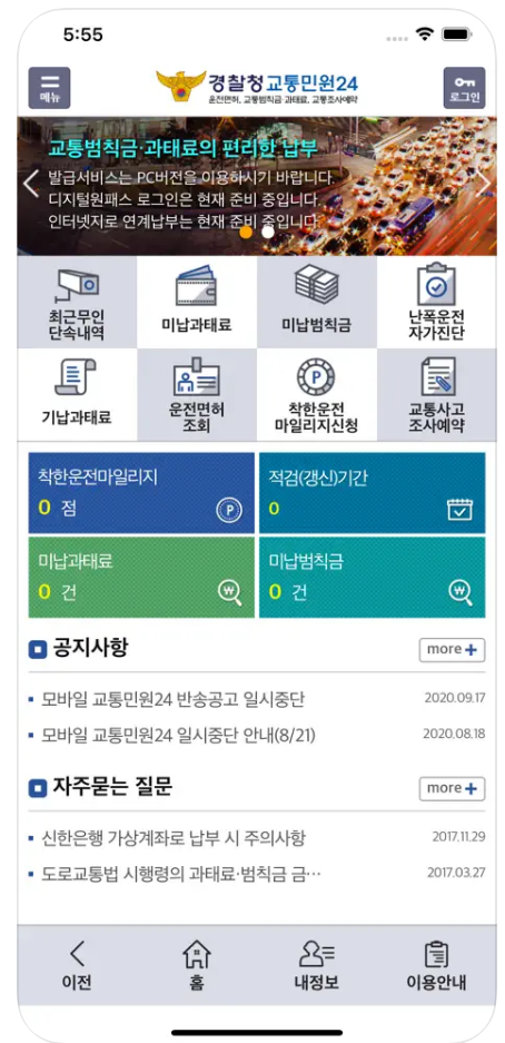 사용하는 휴대폰에서 경찰청교통민원 24 이파인 어플을 다운받아 바로 확인 하실 수 있습니다.