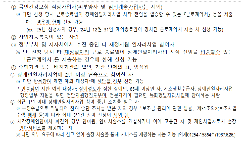 공고일 기준으로 현재 천안시에 거주하고 있는 주민등록된 주민이며 장애인복지법상의 장애인등록을 한 만 18세이상 미취업 상태의 장애인